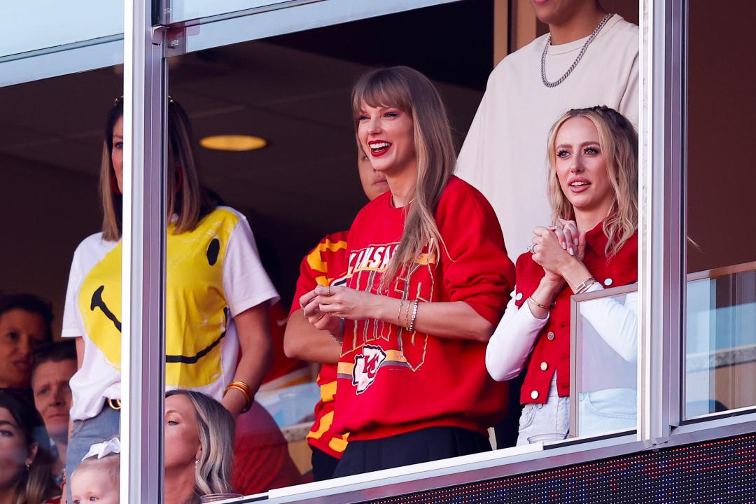 After playing Kansas City in July, Swift returned in October to support her boyfriend, Chiefs star Travis KelceDavid Eulitt—Getty Images
