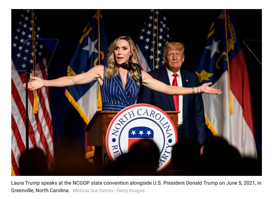 Laura Trump speaks at the NCGOP state convention alongside U.S. President Donald Trump on June 5, 2021, in Greenville, North Carolina.Melissa Sue Gerrits—Getty Images